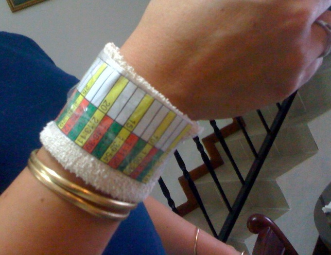 - au stylo indélébile, on écrit sur ses phalanges, à l’intérieur de sa main… on répète bien avant en passant ses mains sous l’eau pour vérifier que ça ne s’efface pas avec la transpiration ou s’il pleut le jour de sa course, de son marathon.
